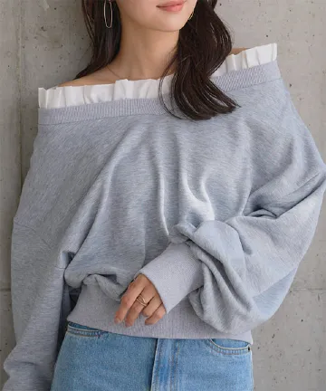 前後2wayフリルドッキングオフショルスウェット [C7731]