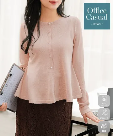 [ オフィスカジュアル ] [ Petitle / プチレ ] パールボタンペプラムニットカーディガン [N1320]