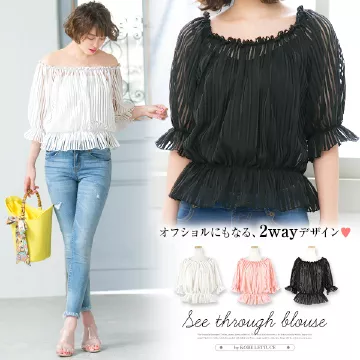 オフショルとしても着用OK◎2Wayシースルートップス [C3185]
