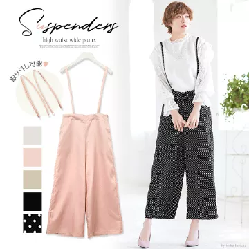 取り外し可能★サス付きハイウエストワイドパンツ [M2063]